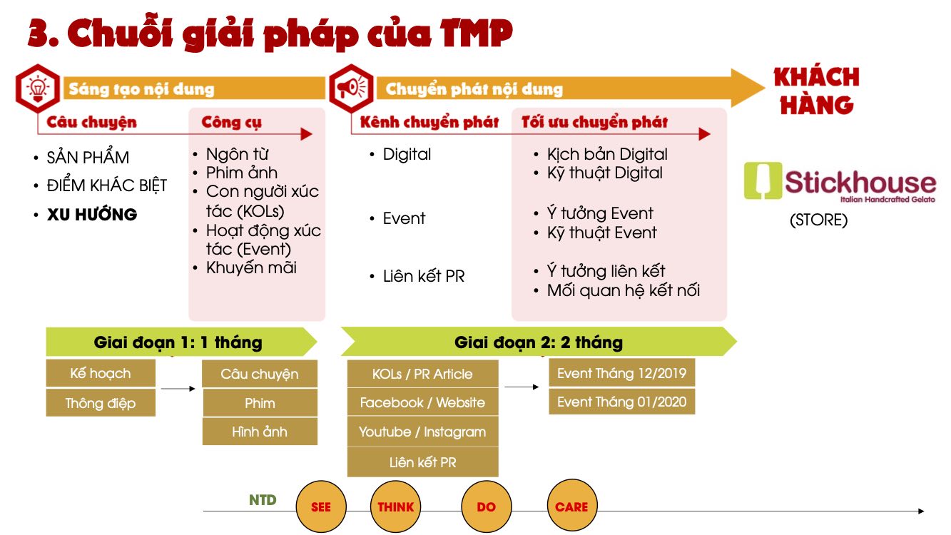 Với việc am hiểu Thị trường F&B Việt Nam và năng lực Kể chuyện Thương Hiệu. TMP đã xây dựng cho Stickhouse Vietnam một chiến dịch ra mắt từ tháng 11 năm 2019 - tháng 1 năm 2020. Các nội dung gồm có: