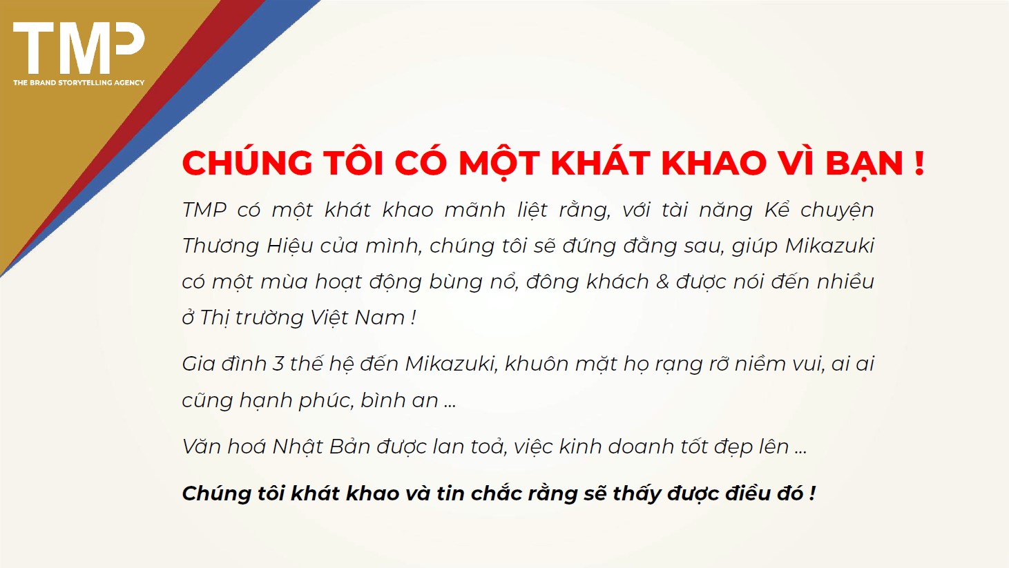 - Giúp gia tăng độ nhận biết về thương hiệu Mikazuki