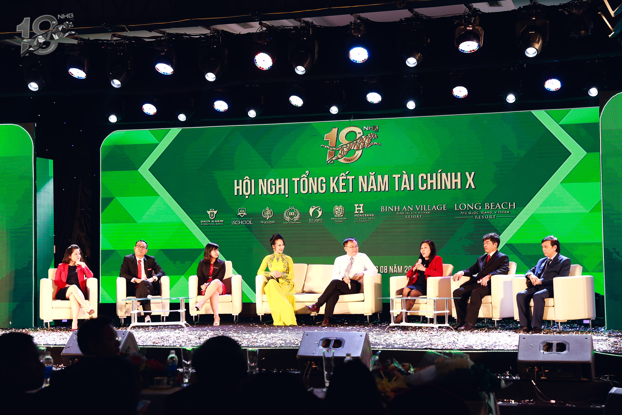 Trong không khí trang trọng và ấm cúng của lễ kỷ niệm 18 năm thành lập, gần 2.000 nhân sự Tập đoàn Nguyễn Hoàng rạng rỡ với màu cờ sắc áo của từng đơn vị thành viên, hoà vào niềm vui chung của Tập đoàn.