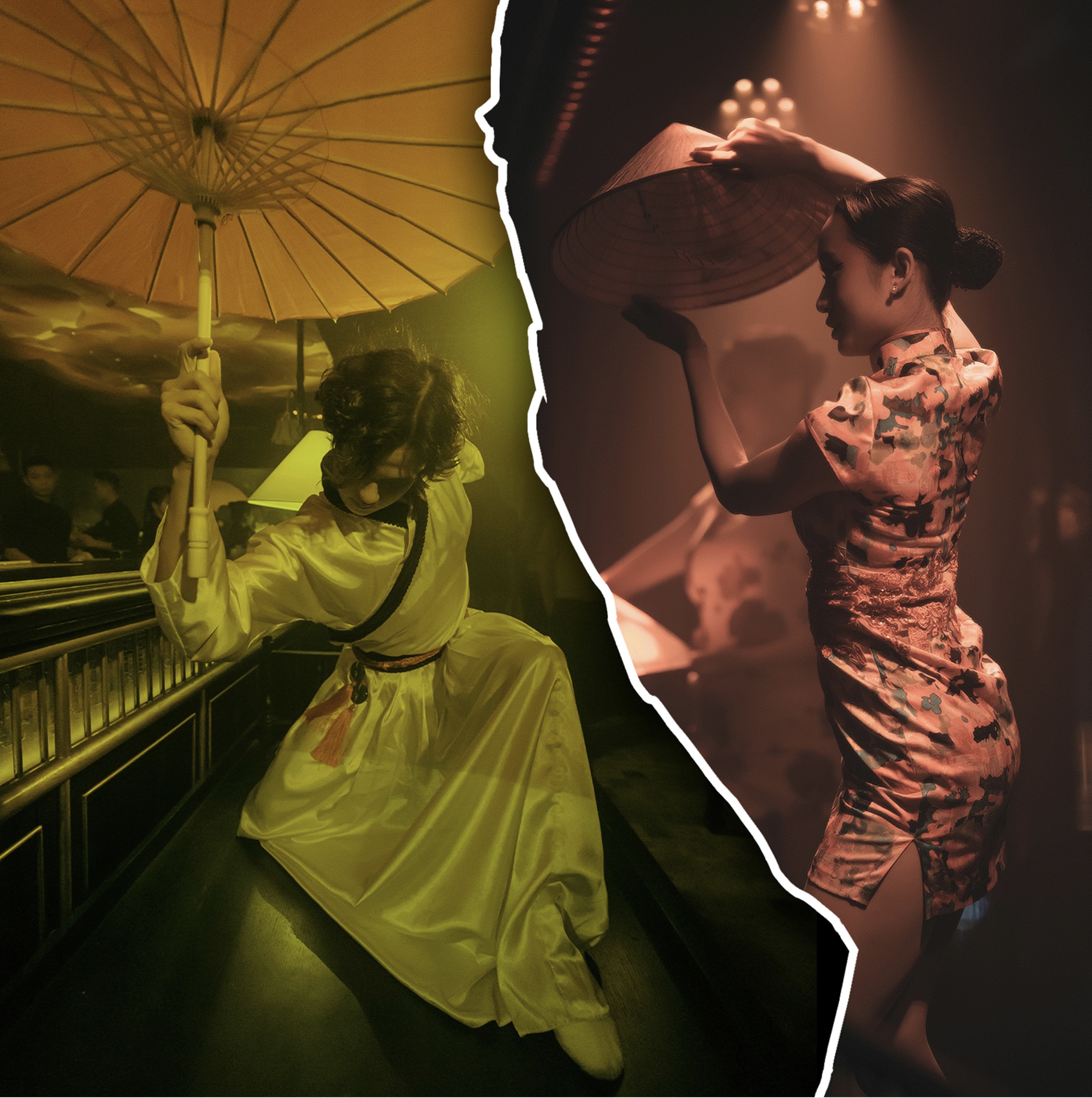 Concept được khai thác chất liệu cung đình Huế và nghệ thuật văn hoá Ả đào Việt Nam trong thiết kế.