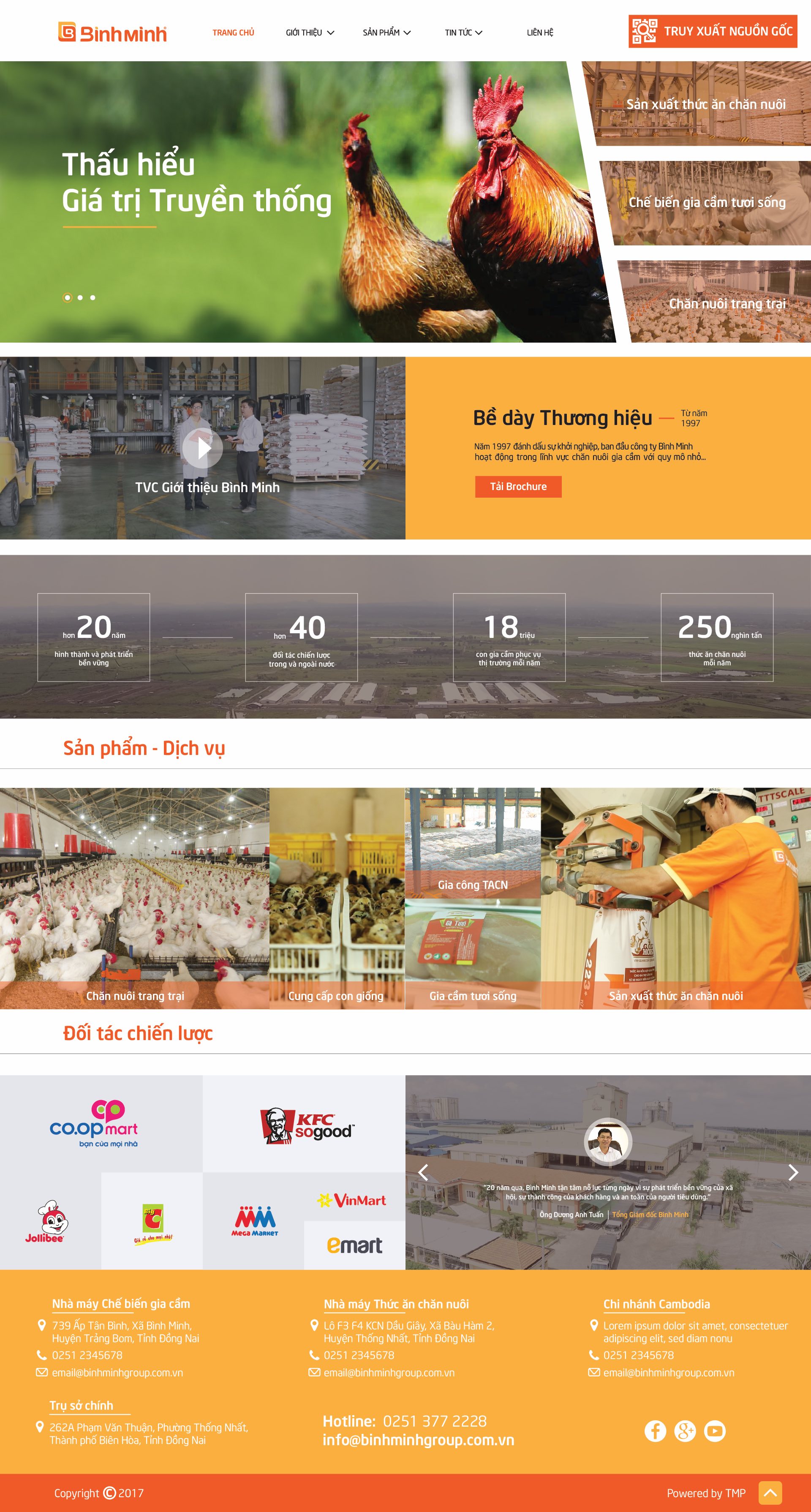 Với việc tập trung 5 ngành chiến lược chứ không làm đại trà, trong đó có ngành Sản xuất Công nghiệp, TMP hiểu công thức làm thương hiệu của ngành sản xuất chăn nuôi công nghiệp một cách chuyên sâu và thành thục, trong đó một Website chỉnh chu là một công cụ bán hàng hiệu quả trước mắt cũng như lâu dài.
