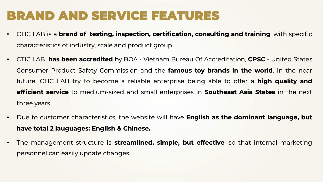 TMP hiểu công thức làm thương hiệu ngành Chứng nhận sự phù hợp & Công nghiệp phụ trợ một cách thành thục và chuyên sâu, qua đó đã giúp CTIC LAB có một website được thiết kế và sắp xếp có logic, tạo ra sự thuận tiện và tin cậy nơi người xem, phù hợp các nhu cầu Marketing & Kinh doanh, từ đó hỗ trợ tiếp cận được đối tượng khách hàng tiềm năng và tăng doanh thu.