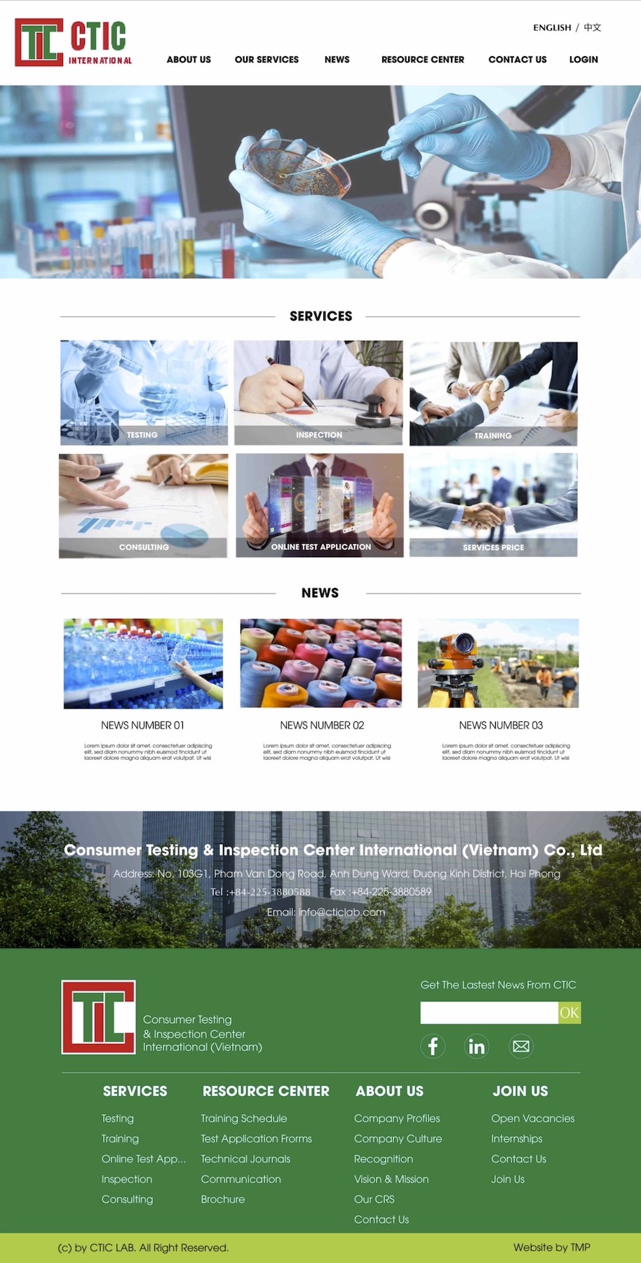 CTIC LAB - Công ty TNHH Quốc tế thử nghiệm và giám định hàng tiêu dùng Việt Nam: là công ty có 100% vốn đầu tư nước ngoài (HongKong) chuyên thử nghiệm các mặt hàng: đồ chơi, giày dép, quần áo, điện tử,... Khách hàng của CTIC LAB là các doanh nghiệp sản xuất công nghiệp chuyên xuất khẩu.