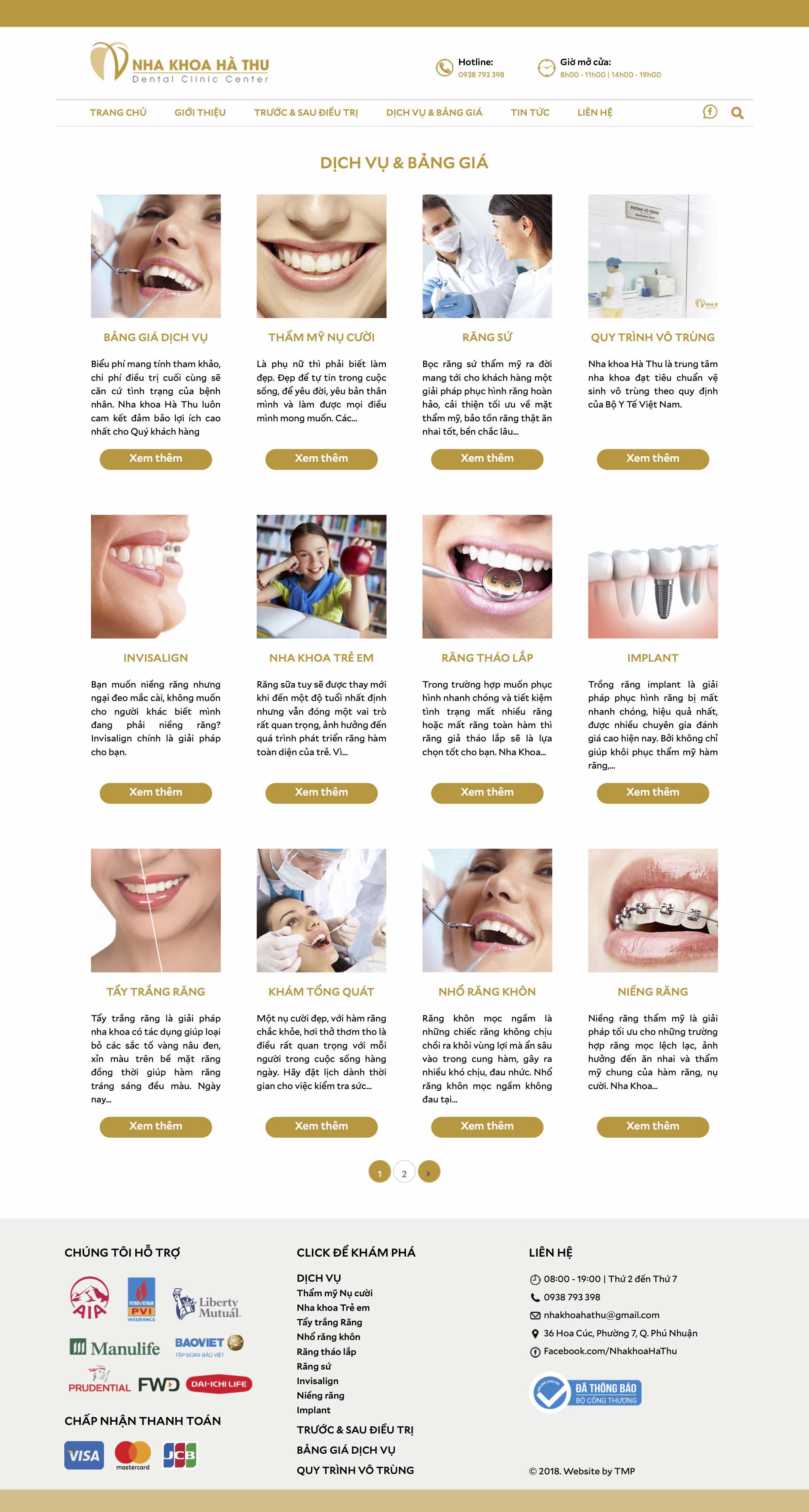 Nha khoa Hà Thu hoạt động trong lĩnh vực liên quan đến sức khỏe và sắc đẹp con người, vì vậy, thiết kế website TMP xây dựng theo tông màu chủ đạo trắng - vàng, tạo cảm giác an tâm, tin tưởng nơi người xem. Việc thiết kế và sắp xếp có logic của TMP tạo ra sự thuận tiện và tin cậy nơi người xem, từ đó giúp Nha khoa Hà Thu tiếp cận được đối tượng khách hàng tiềm năng và tăng doanh thu.